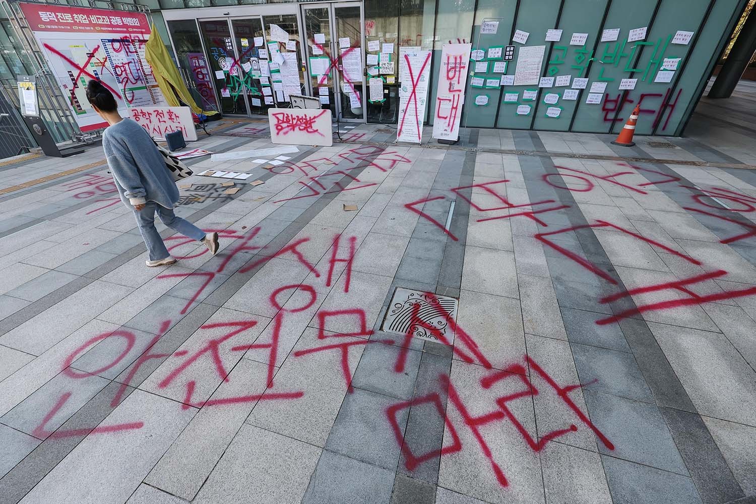 그는 “아세톤과 쇠수세미로 문지른 탓에 교체해야 하는 부분도 많다고 한다”라며 학교가 초기 복구비로 추정한 54억 원은 학생들이 즉시 시위를 중단하고 바로 청소를 시작했을 때 가능한 금액이었다고 덧붙였다.