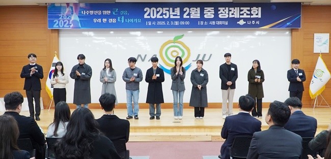 [위키트리 광주전남취재본부 노해섭 기자]전남 나주시(시장 윤병태)는 지난 3일 대회의실에서 윤병태 시장을 비롯해 부시장, 국·소·실장, 직원 등 180여 명이 참석한 가운데 2월 정례조회를 개최했다.