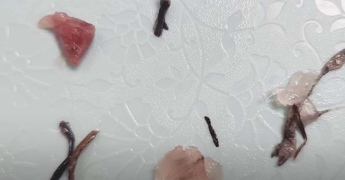 최근 방어 회에서 고사리처럼 생긴 괴물질이 나오는 일이 종종 벌어진다. 김 씨에 따르면 이는 방어 사상충의 사체다.