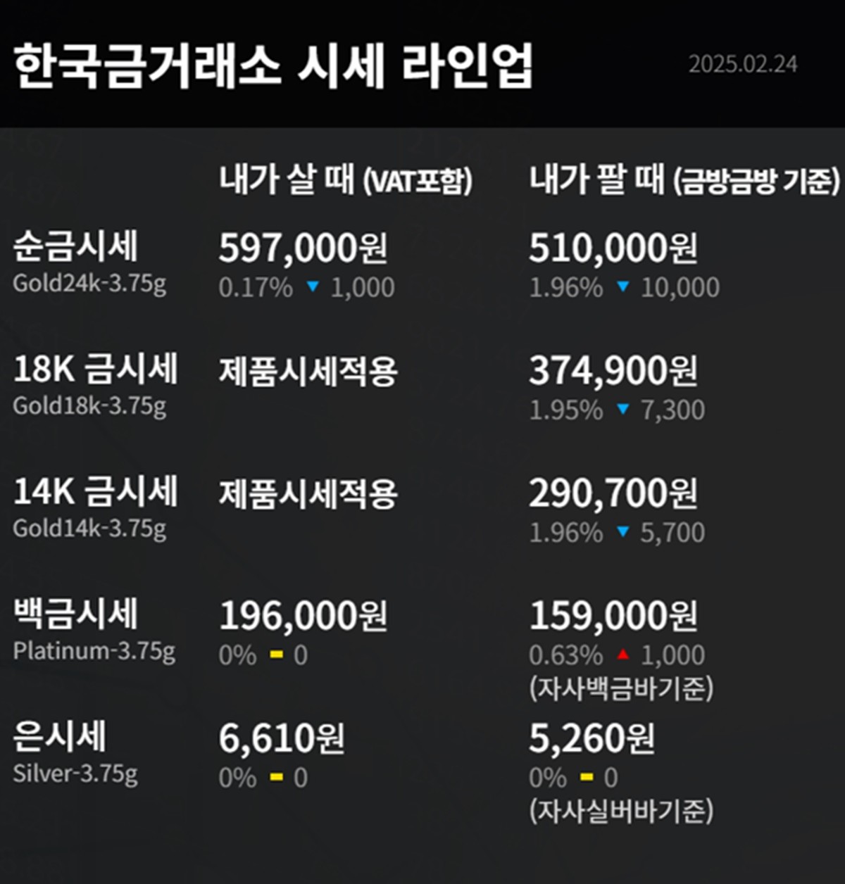 순금(24K) : 매입가 59만 1000원 / 매도가 52만 5000원