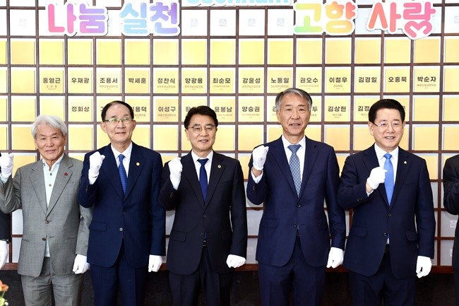 [위키트리 광주전남취재본부 노해섭 기자] 전남도의회 김태균 의장은 3월 11일 오후 2시 전남도청 1층 윤선도홀에서 열린 ‘고향사랑기부제 명예의 전당 제막식’에 참석해 전남에 기부금을 전달한 향우들에게 감사의 뜻을 전했다.