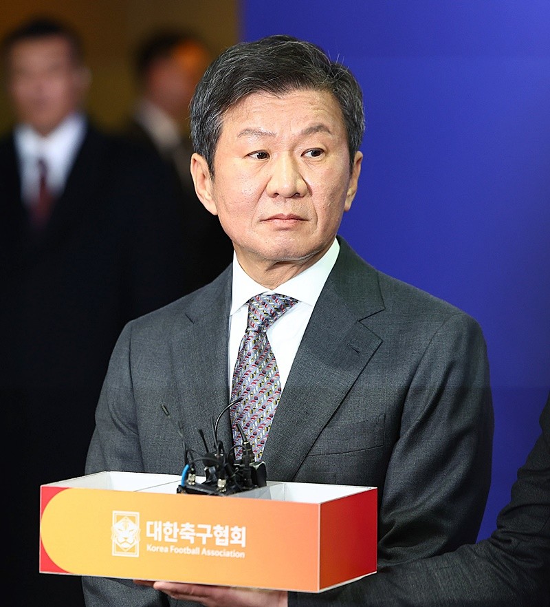 홍명보 한국 축구대표팀 감독의 사퇴를 요구하는 축구팬들이 좌절할 소식이 전해졌다. 4연임에 성공한 정몽규 대한축구협회장의 발언이 알려지자 축구팬들이 술렁였다.