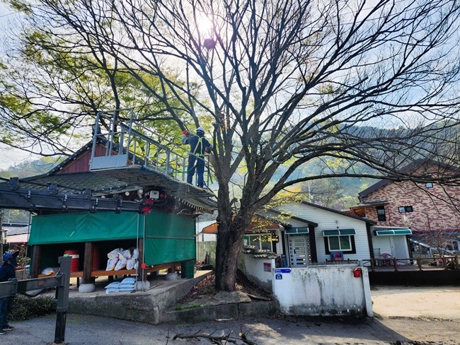 [위키트리 광주전남취재본부 노해섭 기자]장성군이 강풍, 폭우 등으로 인한 주민 피해 예방을 위해 생활권 주변의 재해 위험 나무를 제거하고 있다.
