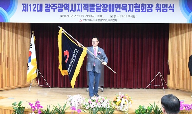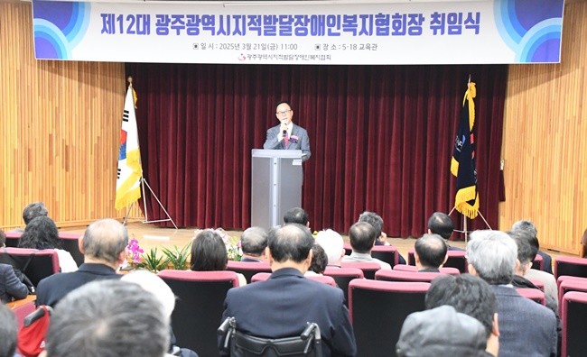 이날 광주 5·18교육관 1층 대강의실에서 열린 제12대 광주광역시시지적발달장애인복지협회장 이·취임식에는 이정선 광주시교육감, 김병내 광주광역시 남구청장, 문인 북구청장,전국 지적발달장애인복지협회 관계자등 주요 내빈들이 참석해 취임을 축하했다.