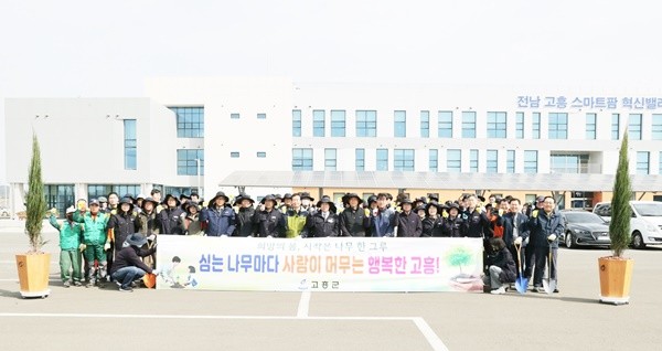 [위키트리 광주전남취재본부 노해섭 기자] 고흥군(군수 공영민)은 제80회 식목일을 앞두고 28일 스마트팜 혁신밸리에서 나무심기 행사를 실시했다고 밝혔다.
