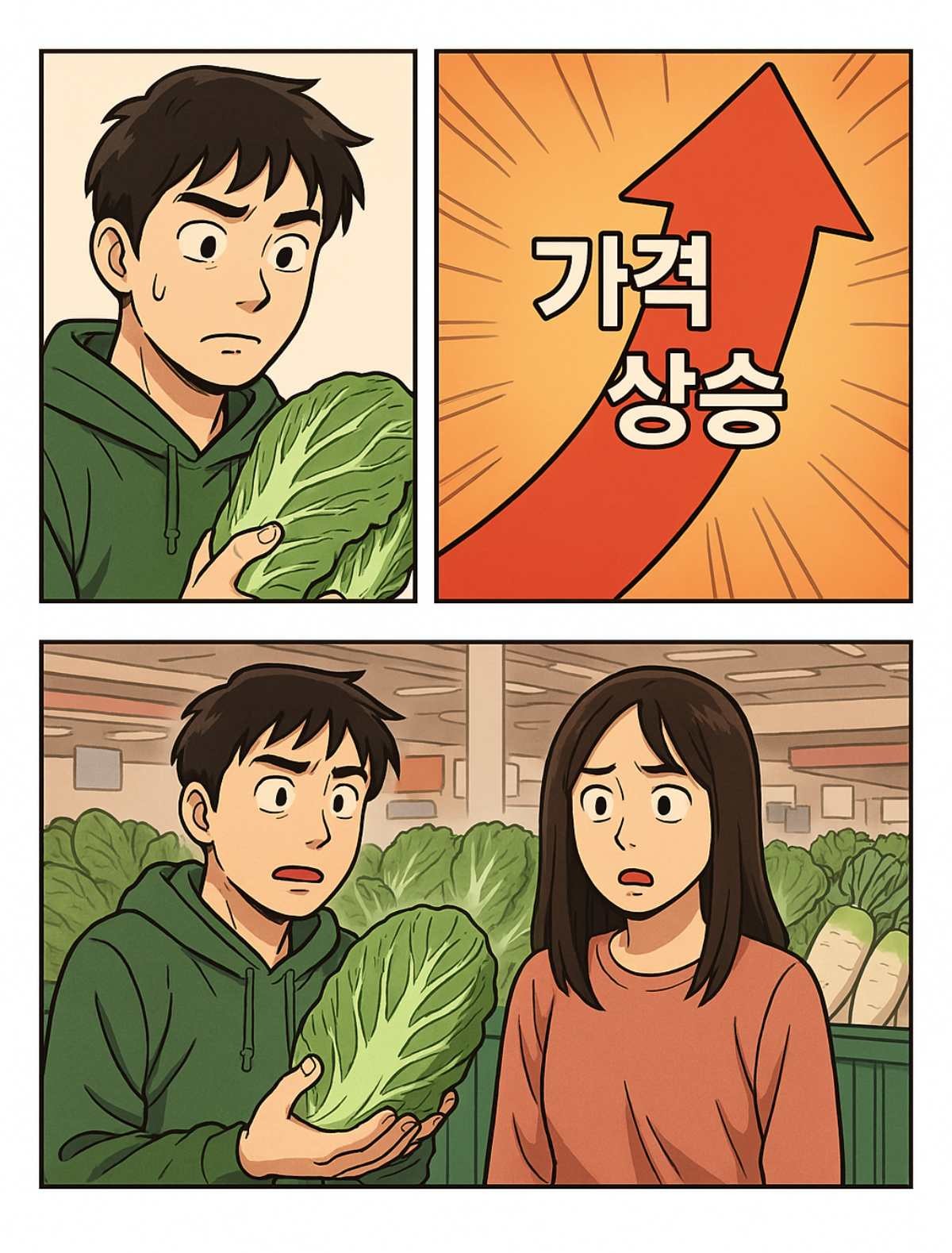 채소 가격 상승 원인은 명확하다. 지난해 파종기였던 8~9월에는 고온이 이어졌고, 생육기였던 겨울철에는 대설과 한파가 겹치며 작황이 부진해졌다. 이로 인해 공급량이 줄었고, 이는 곧바로 소비자가격 상승으로 이어졌다. 농림축산식품부는 4월 초 현재 배추와 무를 비롯해 양배추, 당근, 양파 모두에서 강세가 지속되고 있다고 밝혔다.