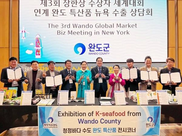 11일에는 뉴욕 롱아일랜드 키스뷰티그룹 본사에서 열린 전시 및 수출 상담회에 다시마전복수산(영), 완도바다(영), 해미원(영), 완도맘(영), ㈜바다명가, (유)하나물산, (유)해성인터내셔널, ㈜이노플럭스 어업회사법인, 성백전통식품 등 9개의 완도군 수출 업체가 참가해 미국 동부지역 바이어들과 수출 상담을 49건 진행했다.