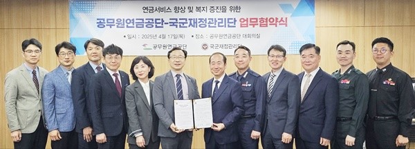 공무원연금공단(이사장 김동극)은 지난 17일 공단 제주 본사에서 국군재정관리단(단장 김천중)과 상호 교류 및 협력 관계 구축을 통한 연금서비스 향상과 복지 증진 도모를 위한 업무협약을 체결했다.