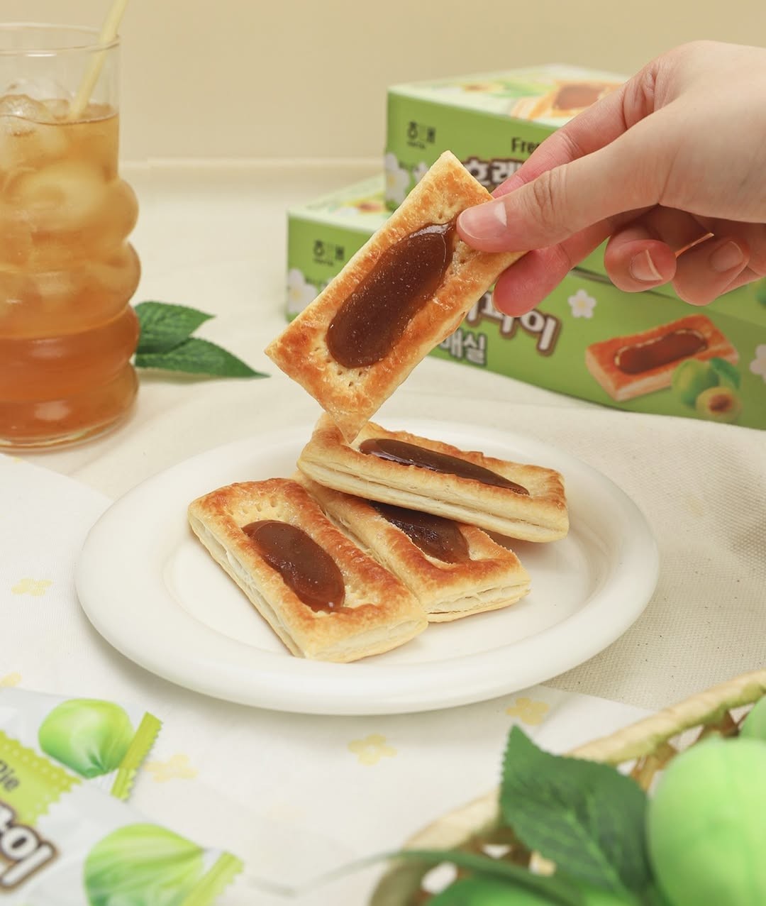 매실과 페스츄리를 조합한 과자를 만든 회사는 제과업계 중 해태제과가 처음이다. 제철 매실의 신선함을 살리기 위해 43만 개 한정 생산됐다. 64겹 페스츄리 반죽에 하동산 매실 잼을 얹어 바삭한 식감과 달콤새콤한 맛을 구현했다. 최적의 가열 공정을 통해 장기 보관해도 바삭한 식감을 유지하며, 진한 매실 과육으로 상큼함을 더했다.