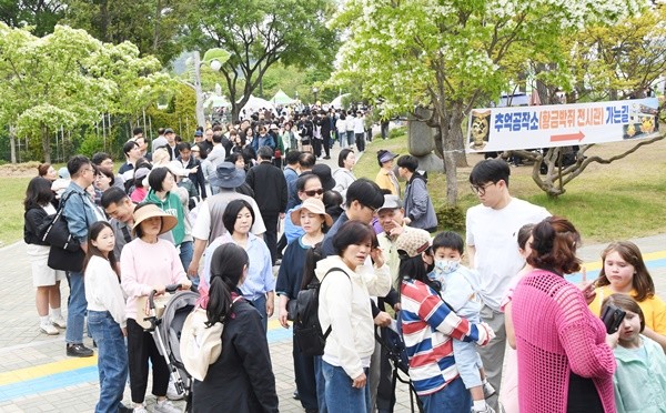 [위키트리 광주전남취재본부 노해섭 기자] 황금연휴인 4일부터 5일까지 이틀간 함평나비대축제가 열리고 있는 함평엑스포공원에 관람객 8만여명이 다녀가 인산인해를 이루었다.