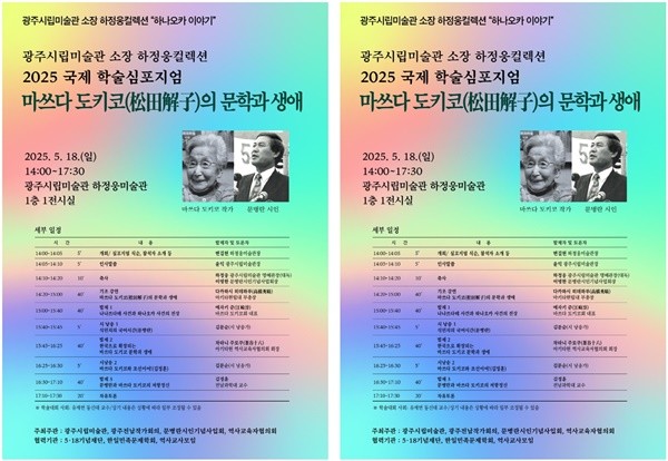 [위키트리 광주전남취재본부 노해섭 기자]광주광역시립미술관은 오는 18일 오후 2시 하정웅미술관 1전시실에서 2025 국제 학술 심포지엄 ‘마쓰다 도키코(松田解子)의 문학과 생애’를 개최한다.