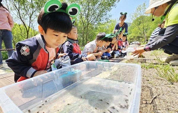 [위키트리 광주전남취재본부 노해섭 기자]12일 광주시 북구 화암동 평두메습지에서 열린 ‘람사르습지 탐험대’ 프로그램에 참가한 해달별 어린이집 아이들이 습지에 서식하는 올챙이와 곤충들을 관찰하며 자연의 소중함을 느껴보고 있다.