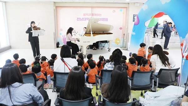 뿐만 아니라 전남대병원은 어린이날을 맞아 다양한 프로그램과 나눔 행사를 진행했다. 지난 2일 6동6층 어린이병동에 입원해 있는 환아들에게 어린이날 기념 선물과 다과를 전달했으며, 지난 달 29일 6동1층 로비에서 약 100여명의 환아 및 가족들에게 장난감 만들기 부스, 그림그리기, 어린이 음악회 등을 열었다.