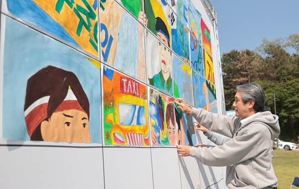 이 총장과 학생들이 완성한 벽화는 14일부터 전남대 518광장과 민주마루 앞에 전시된다.