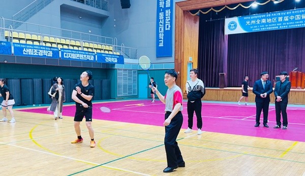 광주‧전남 지역 중국인 유학생들의 교류 활동을 지원하기 위해 동신대학교가 개최한 ‘제1회 중국 유학생 배드민턴 대회’가 동신대 체육관에서 성황리에 마무리됐다.