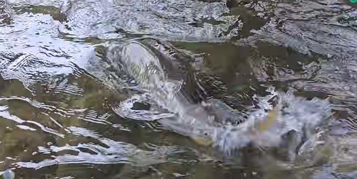 김준영은 “산란철이라서 잉어가 엄청나게 많다”라면서 “거대한 잉어들이 연어떼처럼 상류를 향해 헤엄친다”라고 말했다. 그는 물을 거슬러 올라가는 한 잉어를 가리키며 “우와, 이 크기 뭐야. ‘8짜’(80cm)는 가까이 돼 보인다”라고 깜짝 놀랐다.