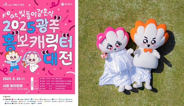 광주광역시(시장 강기정)는 오는 24일 오전 10시30분 시청 앞 빛의 정원에서 광주시 대표 홍보캐릭터인 ‘빛돌이’와 여자친구 ‘빛나영’의 결혼식을 콘셉트로 한 ‘2025 광주 홍보캐릭터 대전’을 개최한다.