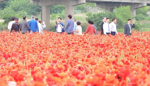 [위키트리 광주전남취재본부 노해섭 기자]봄기운이 완연한 가운데 24일 형형색색 꽃양귀비로 물든 전남 나주 영산강변에 만끽하려는 시민과 관광객의 발길이 이어지고 있다.