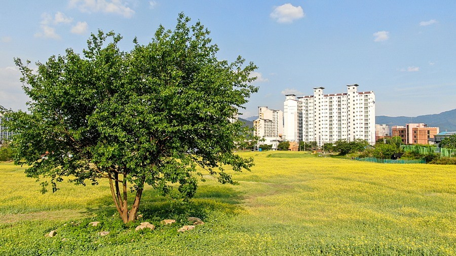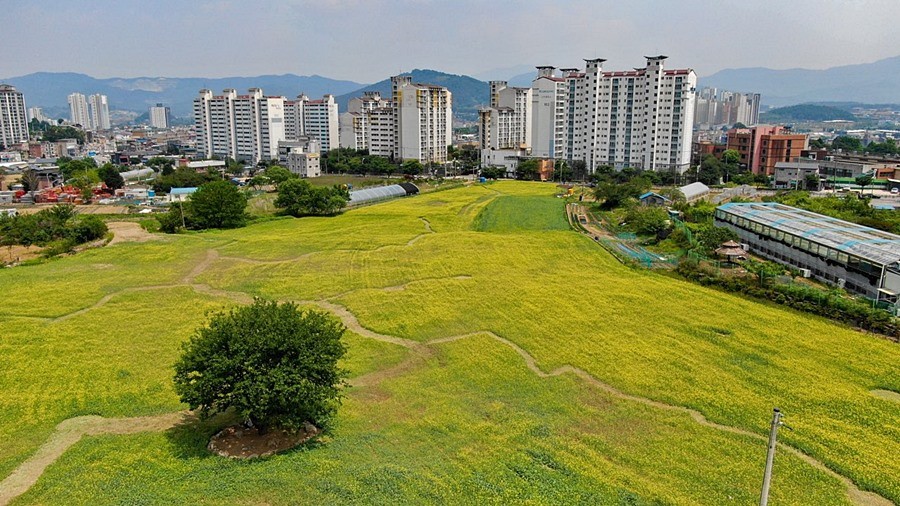 포천동은 지난 3월부터 약 8,000평의 유휴지를 정비해 6,000평 규모의 유채꽃 단지와 산책로를 만들었다.