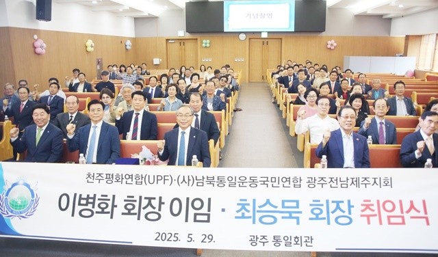 [위키트리 광주전남취재본부 노해섭 기자]천주평화연합(UPF)과 남북통일운동국민연합 광주전남제주지회가 29일 광주 통일회관에서 회장 이·취임식을 열고 새로운 도약을 다짐했다.