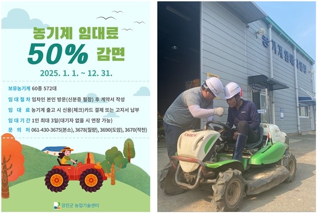 [위키트리 광주전남취재본부 노해섭 기자]강진군이 농기계 임대료 감면과 맞춤형 안전관리 대책을 동시에 추진하며, 지역 농업인의 부담 경감과 안전한 영농환경 조성을 위한 이중 전략을 강화하고 있다.