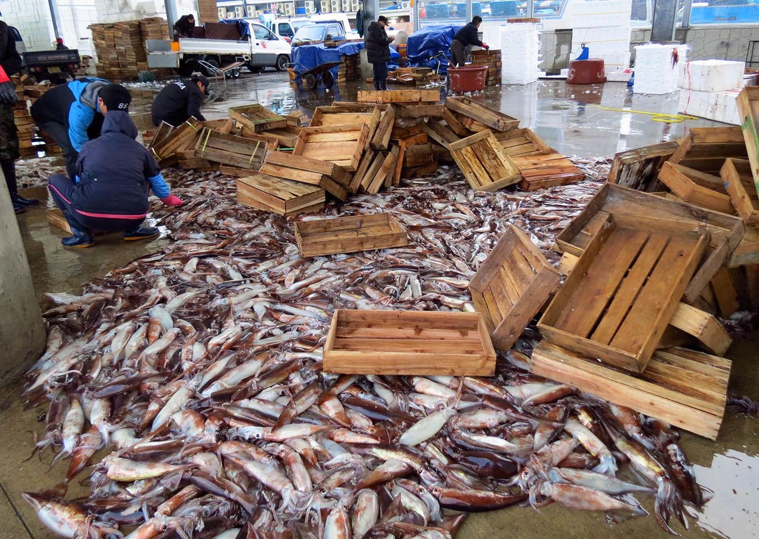 G1 뉴스 최근 보도에 따르면 지난달 12일 금어기 해제 이후 강릉시 수협 소속 채낚기 어선 11~12척이 오징어 조업을 시작했다. 이들은 5~6차례 항차를 통해 오징어를 잡았지만 어획량이 미미하다.