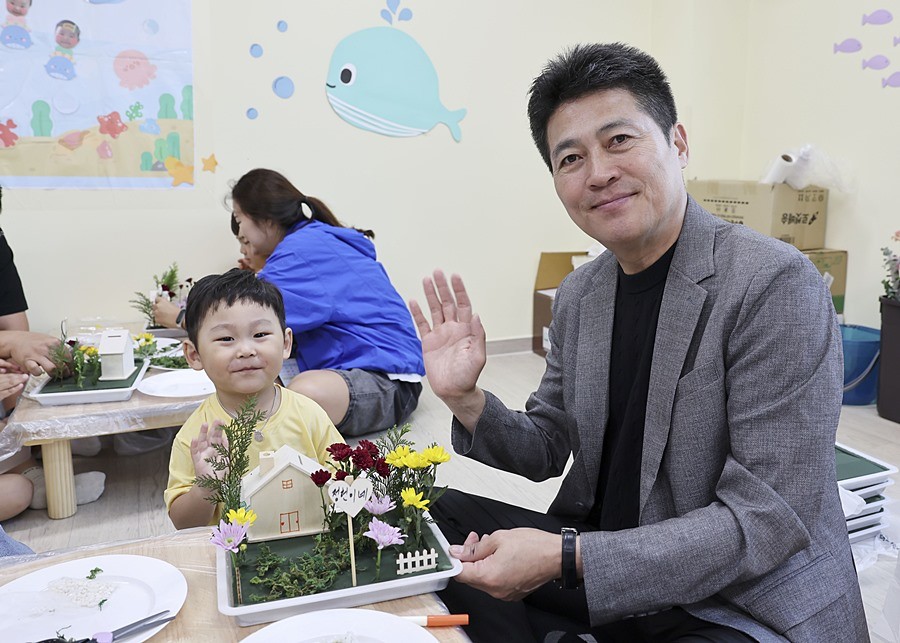 이날 김정헌 구청장은 ‘영유아와 부모가 함께하는 참여 수업’에 동참하며, 학부모와 교직원, 원아들과 소통하는 시간을 가졌다.