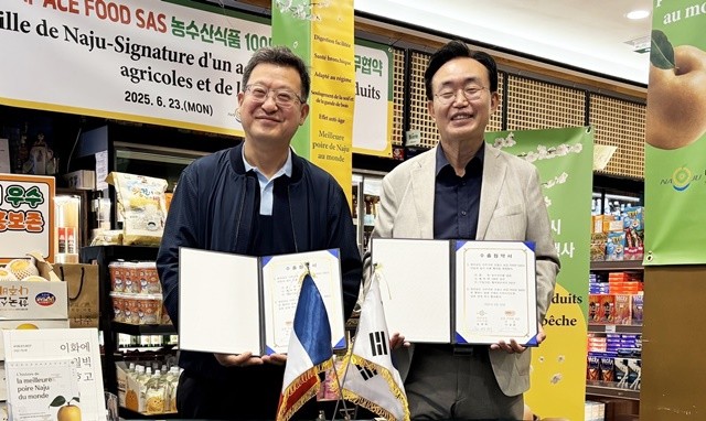 [위키트리 광주전남취재본부 노해섭 기자]전남 나주시가 프랑스 내 한국식품 전문 유통사인 와 약 100만 달러 규모의 농수산식품 수출 협약을 성사시키며 유럽 시장 진출의 신호탄을 쏘아올렸다.