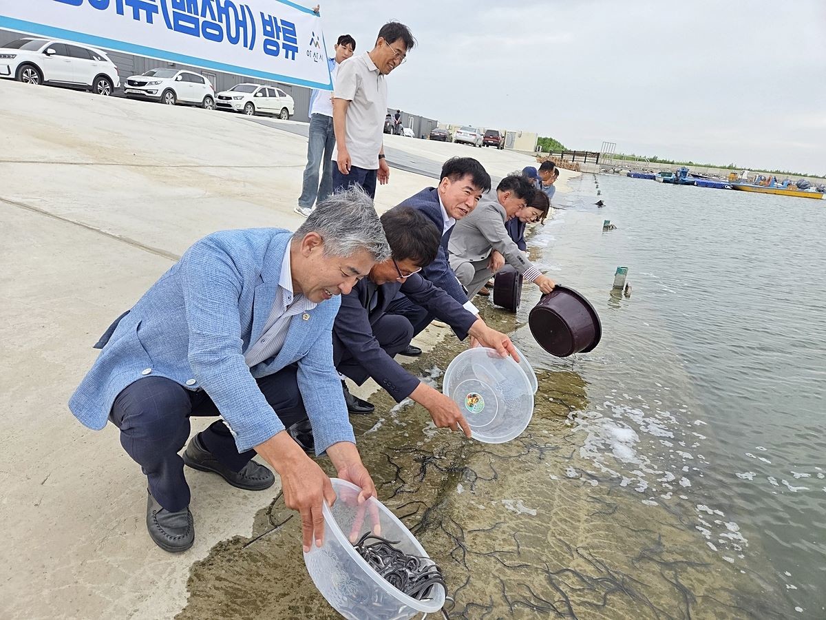 충남 아산시가 해양수산부 주관 '전국 실뱀장어 방류 주간'에 맞춰 최근 아산호와 삽교호 일대에 실뱀장어 치어 4만 2000마리를 방류했다고 27일 밝혔다. 실뱀장어는 민물장어의 새끼(치어)다.