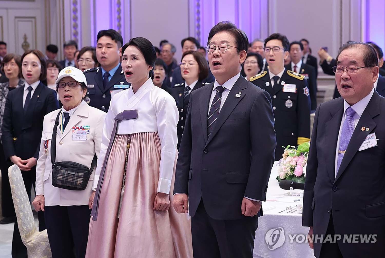 이 대통령은 참석자들의 이름을 일일이 부르며 감사를 표했다. 그는 "1919년 4월 진천 만세운동에 참여하던 중 순국한 고 박도철 선생님의 증손녀 박영현님이 자리하셨다. 조국을 대표해서 감사드린다"며 "유격 대원으로서 6·25 전쟁 참전 유공자이신 이춘자 용사님, 남편인 박창훈 용사님께서도 같은 부대에서 맹활약했다는데, 용사님들이 계셔 지금의 대한민국이 있다"고 말했다.