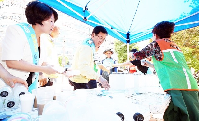 30일, 기온이 30도를 웃도는 무더운 날씨 속에 북구청은 우산근린공원에서 어르신과 지역 주민들을 대상으로 얼음물과 미숫가루를 나눠주는 행사를 진행했다. 현장에는 문인 북구청장을 비롯해 안전총괄과 직원들과 자율방재단원들이 함께해 더위에 지친 주민들을 살뜰히 챙겼다.