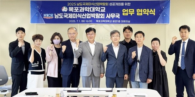 [위키트리 광주전남취재본부 노해섭 기자]남도국제미식산업박람회 사무국이 지난 1일 목포과학대학교(총장 이호균)와 업무협약(MOU)을 하고, 청년 인재 양성과 지역 식품 산업의 성장을 위한 본격적인 협력에 나섰다.