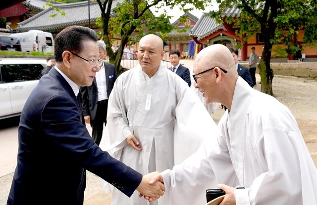 [위키트리 광주전남취재본부 노해섭 기자]김영록 전라남도지사가 7일 영광 불갑사에서 봉행된 취암당 만당 종사 영결식에 참석해 고인의 공덕을 기리며 애도의 뜻을 전했다.