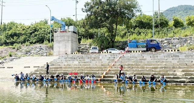 이날 방류 행사는 지역 주민과 공무원 등 40여 명이 참여한 가운데 진행됐다.