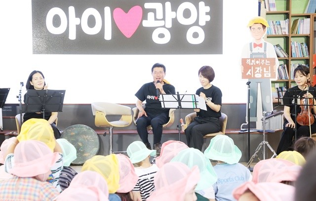 책 읽기 활동 후에는 아이들과 함께 ‘광양 지도 만들기’ 체험이 이어졌고, 이어 참석한 100여 명의 보호자들과 정 시장이 아이들의 독서 습관과 지역 독서문화에 대해 자유롭게 의견을 나누는 뜻깊은 시간도 마련됐다.