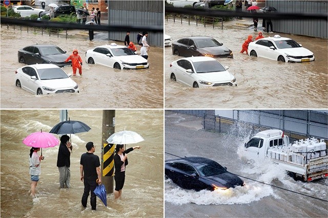 [위키트리 광주전남취재본부 노해섭 기자]17일 광주시 북구청 사거리 일대가 갑작스런 집중호우로 하수관이 범람해 도로 곳곳이 침수됐다.