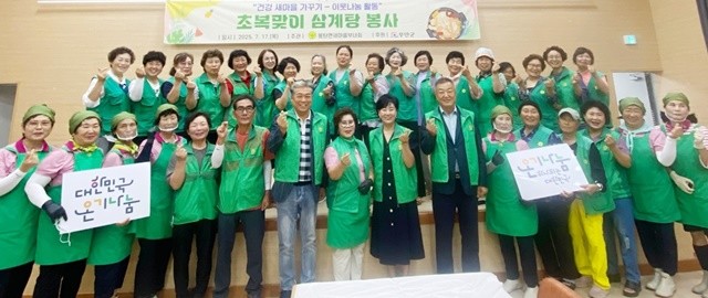 기관사회단체 등을 포함한 총 250여 명의 군민이 참석한 이번 행사는 몽탄농협의 닭 250마리 후원과 새마을부녀회의 정성어린 삼계 요리 솜씨, 새마을협의회의 서빙으로 주민들이 따뜻한 초복을 맞이하는 뜻깊은 자리였다.