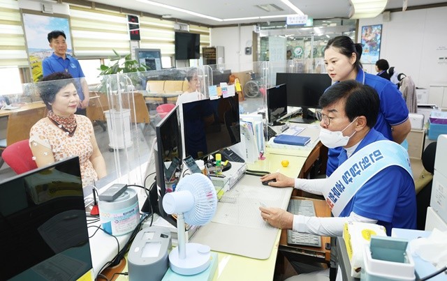 김 군수는 제증명 발급과 무인민원발급기 사용 등 실제 업무를 경험하며, 민원 현장에서의 고충과 개선 의견을 경청했다.