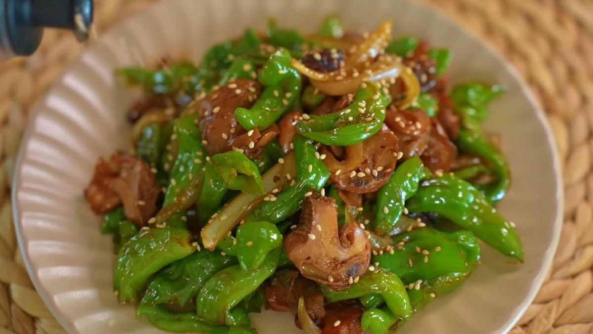 이때 꽈리고추가 숨이 죽지 않고 아삭하게 익으면 불을 그고 접시에 담아 통깨로 플레이팅하면 완성이다.