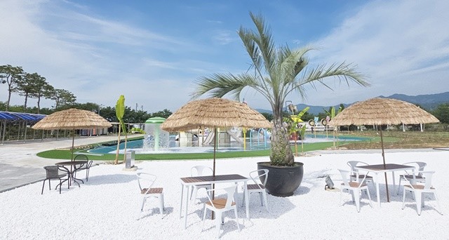 1만㎡ 넓이의 부지에 조성된 이 물놀이장은, 이국적인 분위기의 포토존과 워터슬라이드(79m 포함), 다양한 놀이대, 쾌적한 쉼터와 샤워실, 물품 보관 등 편의시설을 갖췄다.