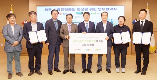 [위키트리 광주전남취재본부 노해섭 기자]광주광역시가 현대백화점그룹, 생명의숲과 함께 북구 신용동에 2만 7,869㎡(약 8,400평) 규모의 신용근린공원을 조성하기로 했다. 22일 체결된 이번 협약에 따라 시는 부지와 행정·기반시설을, 현대백화점그룹은 재원 마련과 홍보를, 생명의숲은 공원 기획·설계·시공 및 녹화관리 등을 각각 맡게 된다.