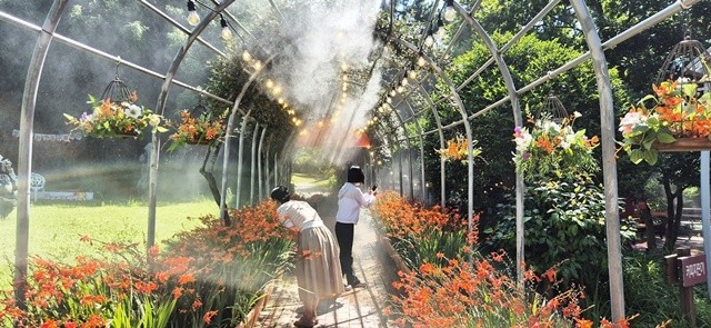 축제장에는 300만 본, 4천만 송이에 달하는 크로코스미아가 일제히 꽃을 피웠고, 미세 안개분사 연출이 더해져 이색적이고 시원한 분위기를 연출했다.