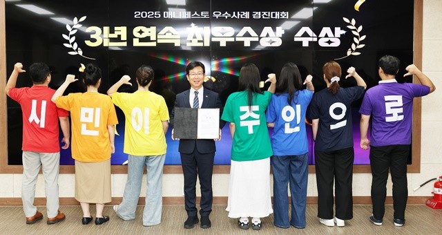 [위키트리 광주전남취재본부 노해섭 기자] 광주시 광산구가 ‘동 미래발전계획’ 정책으로 ‘2025 전국 기초단체장 매니페스토 우수사례 경진대회’에서 최우수상을 거머쥐며 3년 연속 수상의 기록을 세웠다.