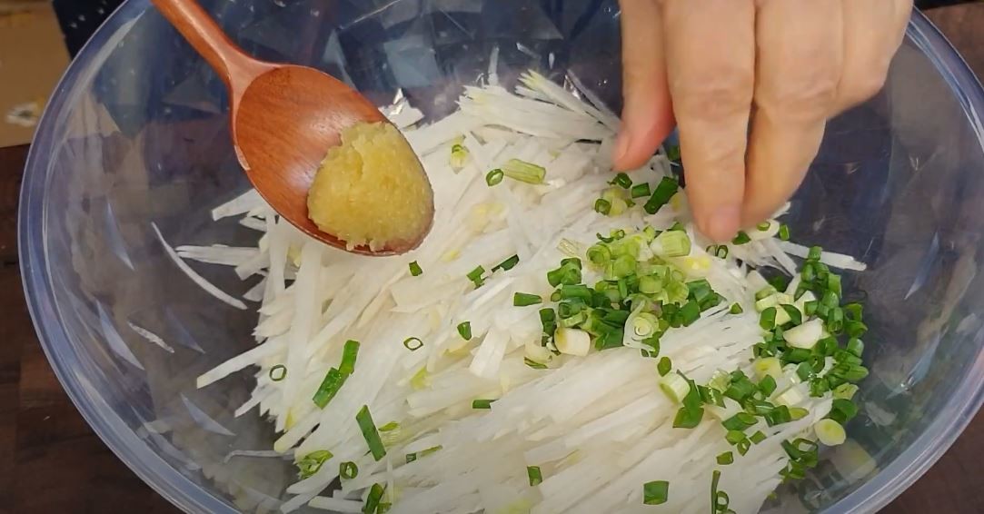 무채 냉국은 조리과정이 매우 간단해 요리 초보자도 쉽게 도전할 수 있다. 우선 무는 껍질을 벗긴 뒤 가능한 한 곱게 채 썰어준다. 채 썬 무는 소금에 10분가량 절여 물기를 뺀다. 절인 무는 가볍게 헹구고 꾹 짜서 준비한다.