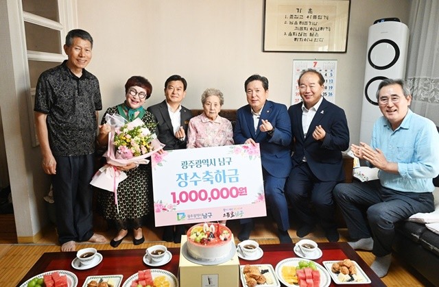 [위키트리 광주전남취재본부 노해섭 기자] 김병내 광주시 남구청장은 30일 봉선2동 삼익아파트에 거주하는 임남균 어르신 댁을 직접 방문해 100세 장수축하금과 축하패를 전달하고, 어르신의 건강과 안녕을 기원했다.