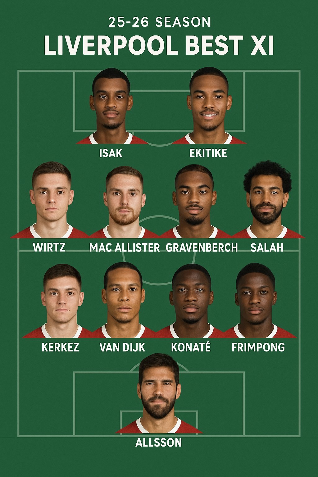아래 사진은 '알렉산더 이삭' 영입 가정 하에 짜여진 2025-26 리버풀 베스트 일레븐이다.