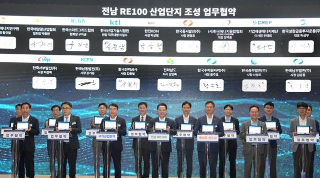 이날 행사에서는 한국전력공사 등 17개 유관기관이 RE100 산단 조성 및 기업 유치를 위한 대규모 업무협약에 참여했다.