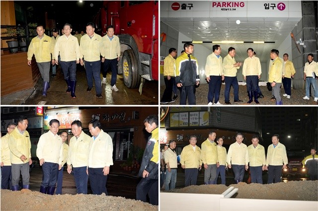 [위키트리 광주전남취재본부 노해섭 기자]김영록 전라남도지사는 3일 저녁, 시간당 1시간 넘게 쏟아진 폭우로 침수 피해가 발생한 무안군 무안읍 일대를 긴급 방문했다.