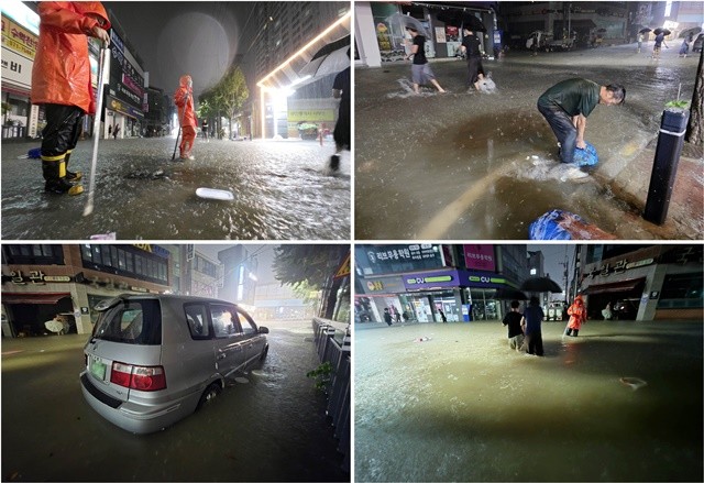 주민 A씨는 “퇴근길에 집까지 10분 거리인데, 물이 허벅지까지 차올라 1시간 가까이 돌아갔다”며 불편을 호소했다.