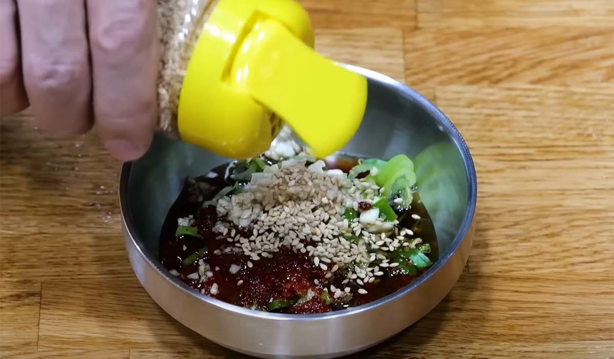 김대석 셰프가 말한 마성의 양념장은 대파 15cm, 고춧가루 1스푼, 설탕 1/2스푼, 진간장 3스푼, 물 2스푼, 다진 마늘 1/2스푼, 청양고추 1개, 참기름 1스푼, 통깨 1스푼으로 구성된다. 김 셰프는 “이 재료들을 잘 섞어두면 어떤 국수 요리에도 활용 가능한 만능 양념장이 된다”고 설명했다.